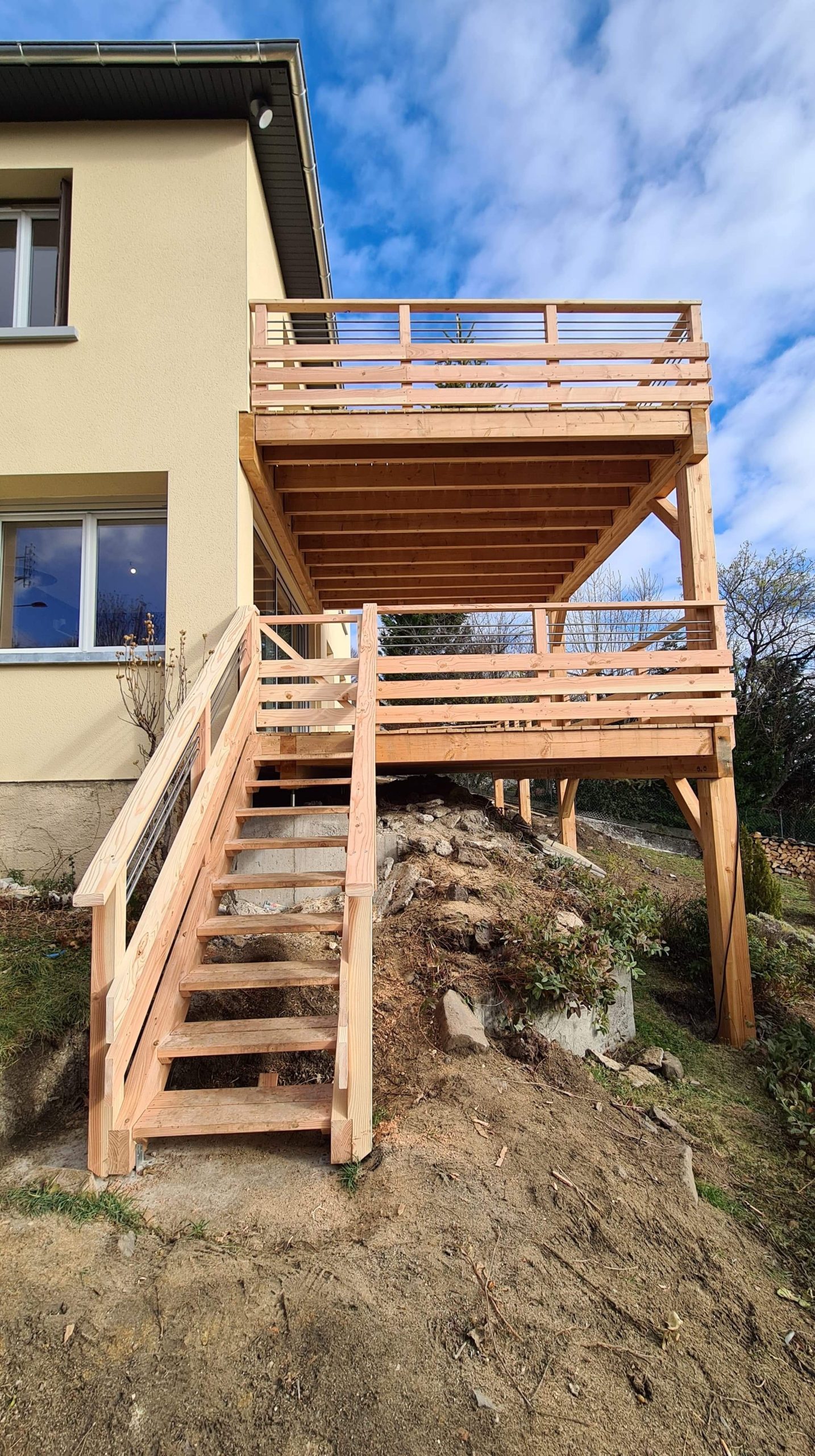Réalisation d’une terrasse sur deux niveaux. Tous les assemblages ont été pensés pour ne retenir aucune goutte d’eau, ceux-ci sont majoritairement cachés assurant un rendu sympathique.