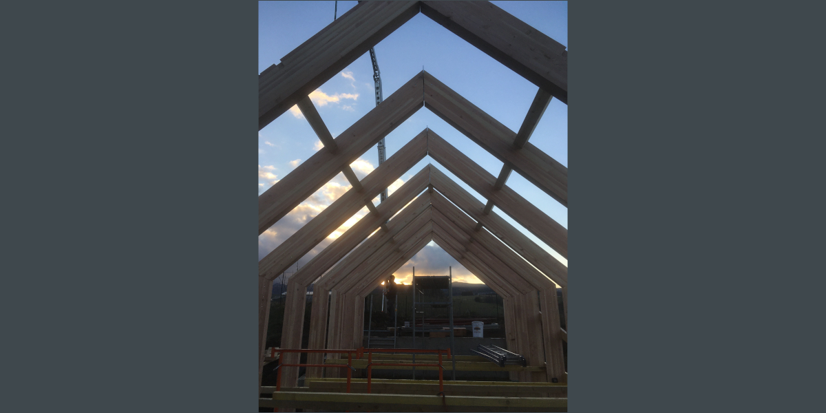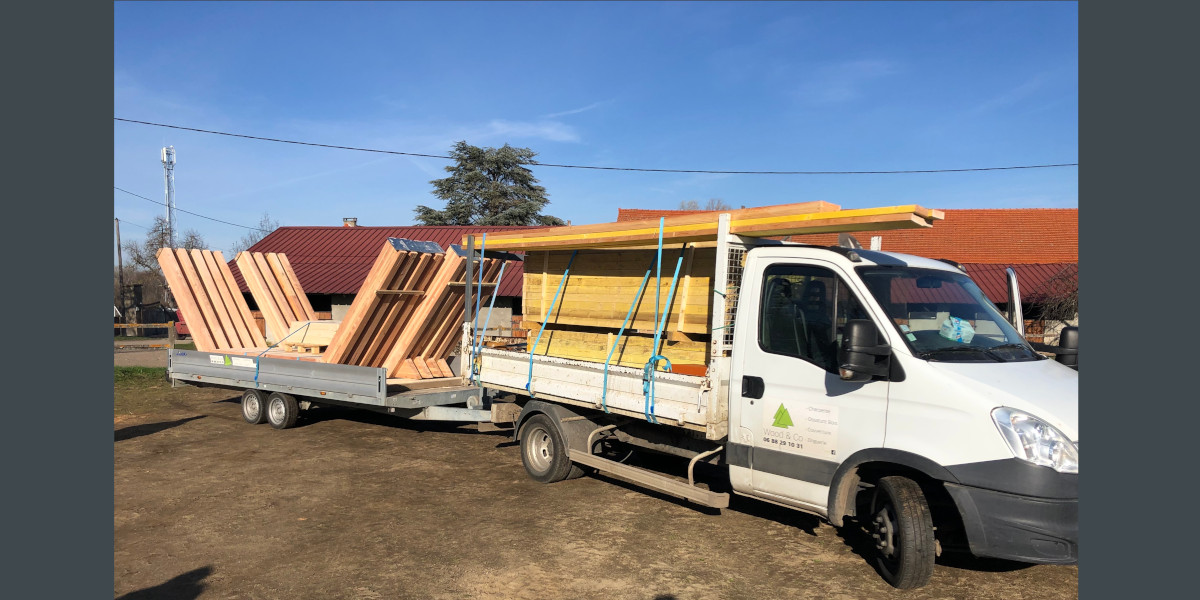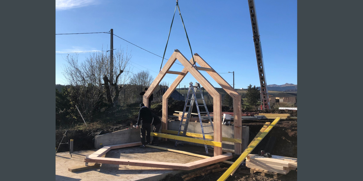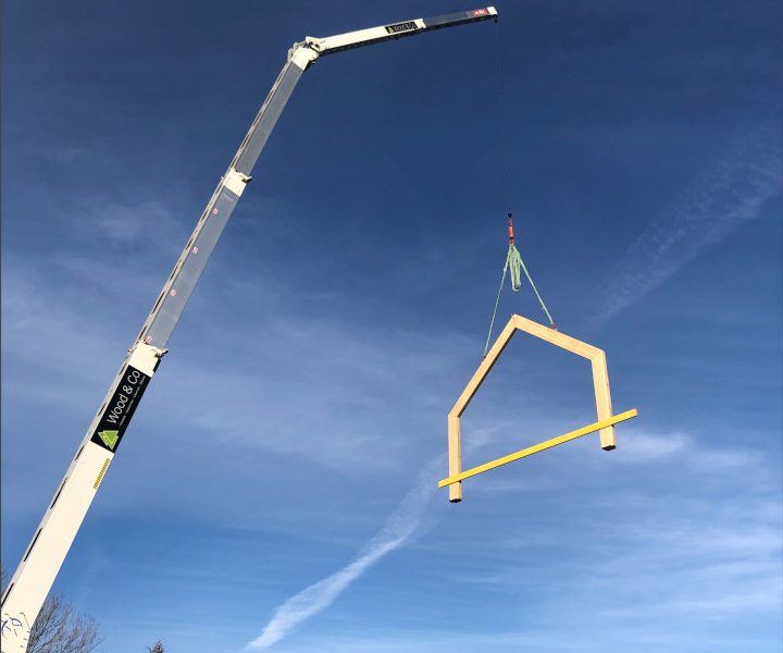 Mise en place de la grue, dans la rue, tous les bois sont passé au dessus de l’habitation.