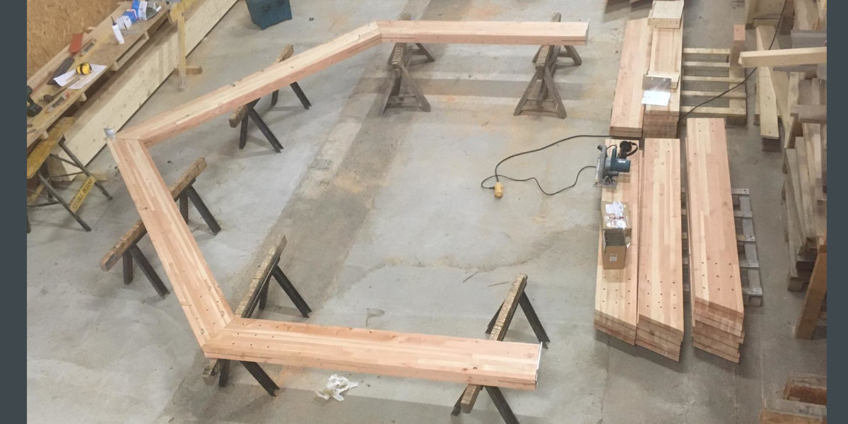Réalisation d’un plancher apparent avec des assemblages invisibles type queues d’arondes.
