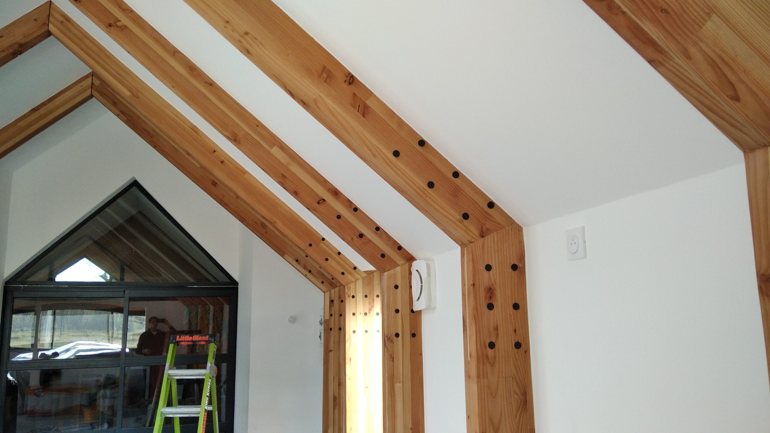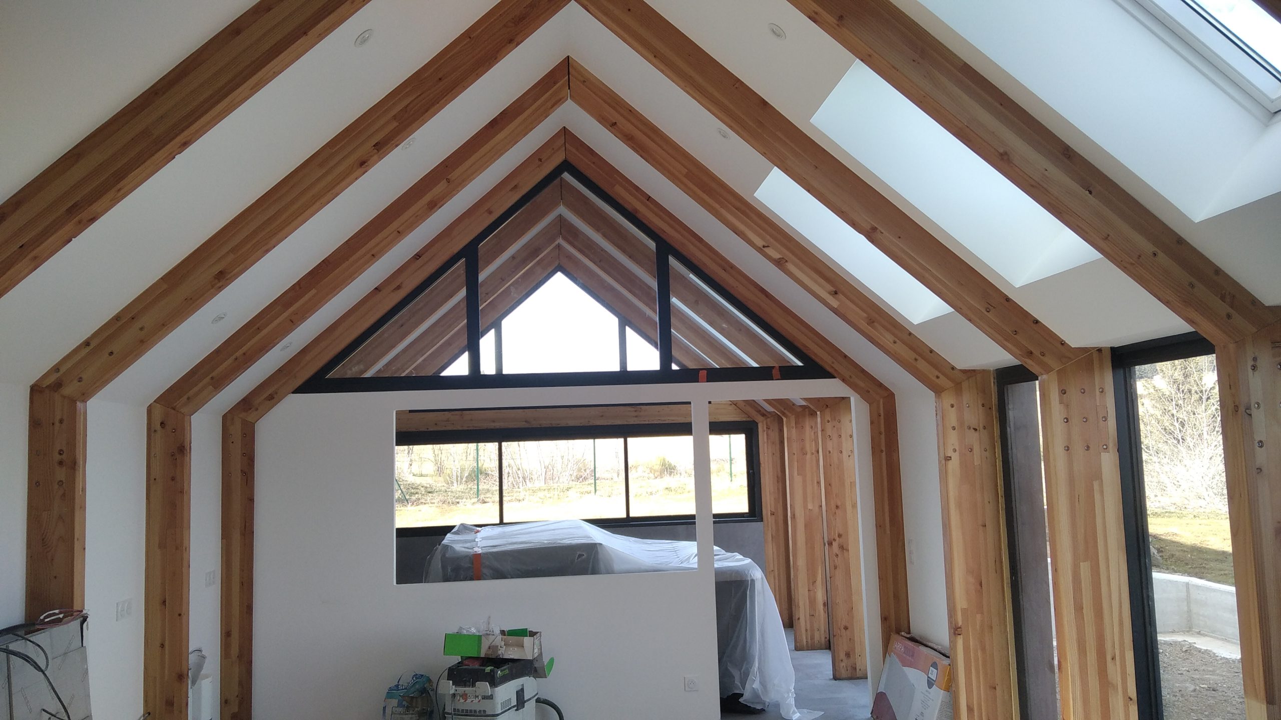 Rénovation complète d’une grange dans le but de la rendre habitable. Les bois proviennent de scierie locale.L’isolation (non présente sur les photos) a été réalisé en matériaux naturels tel que la laine de bois.  Tous les plans et dimensionnements ont été réalisé par le bureau d’études BET Cambium. La taille(fabrication) de la charpente a été réalisée en interne.