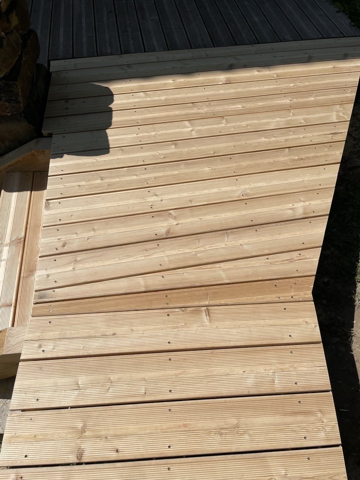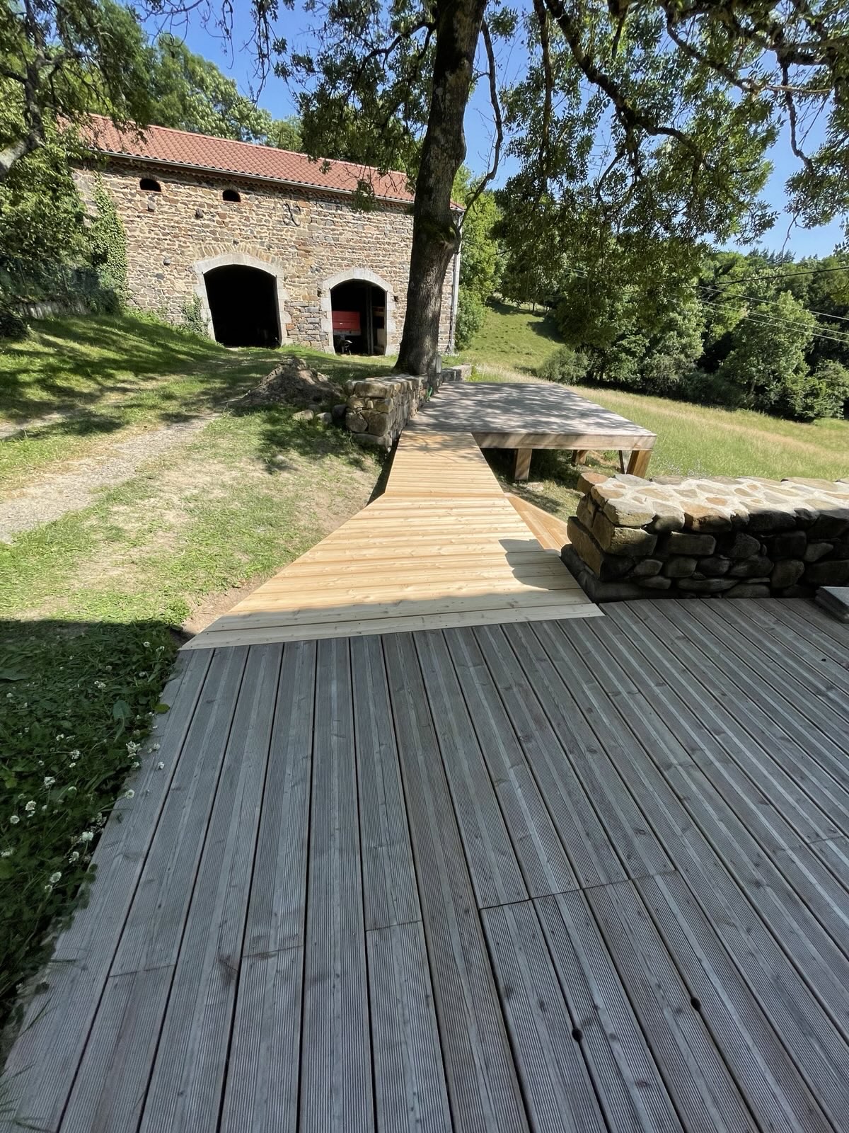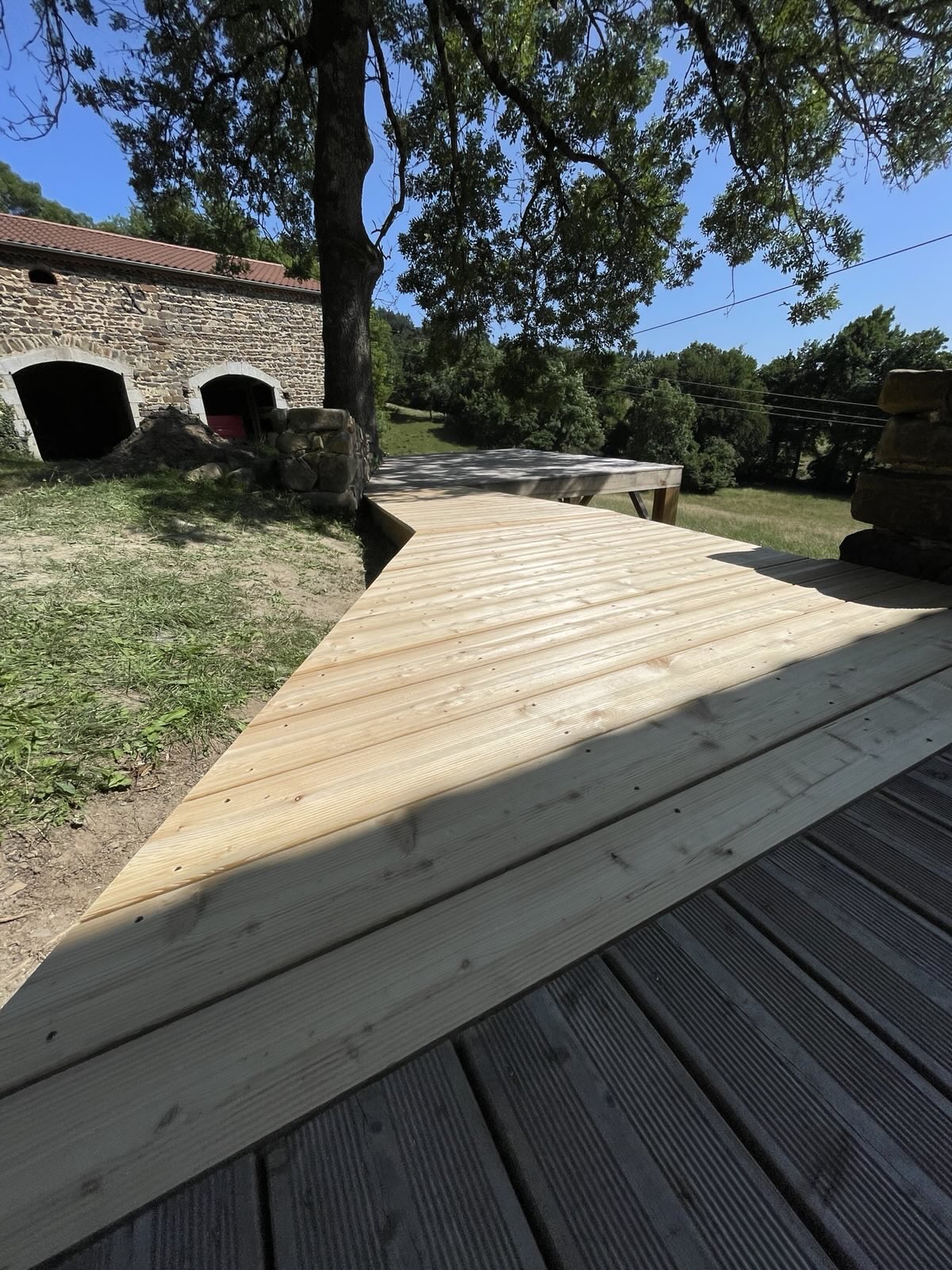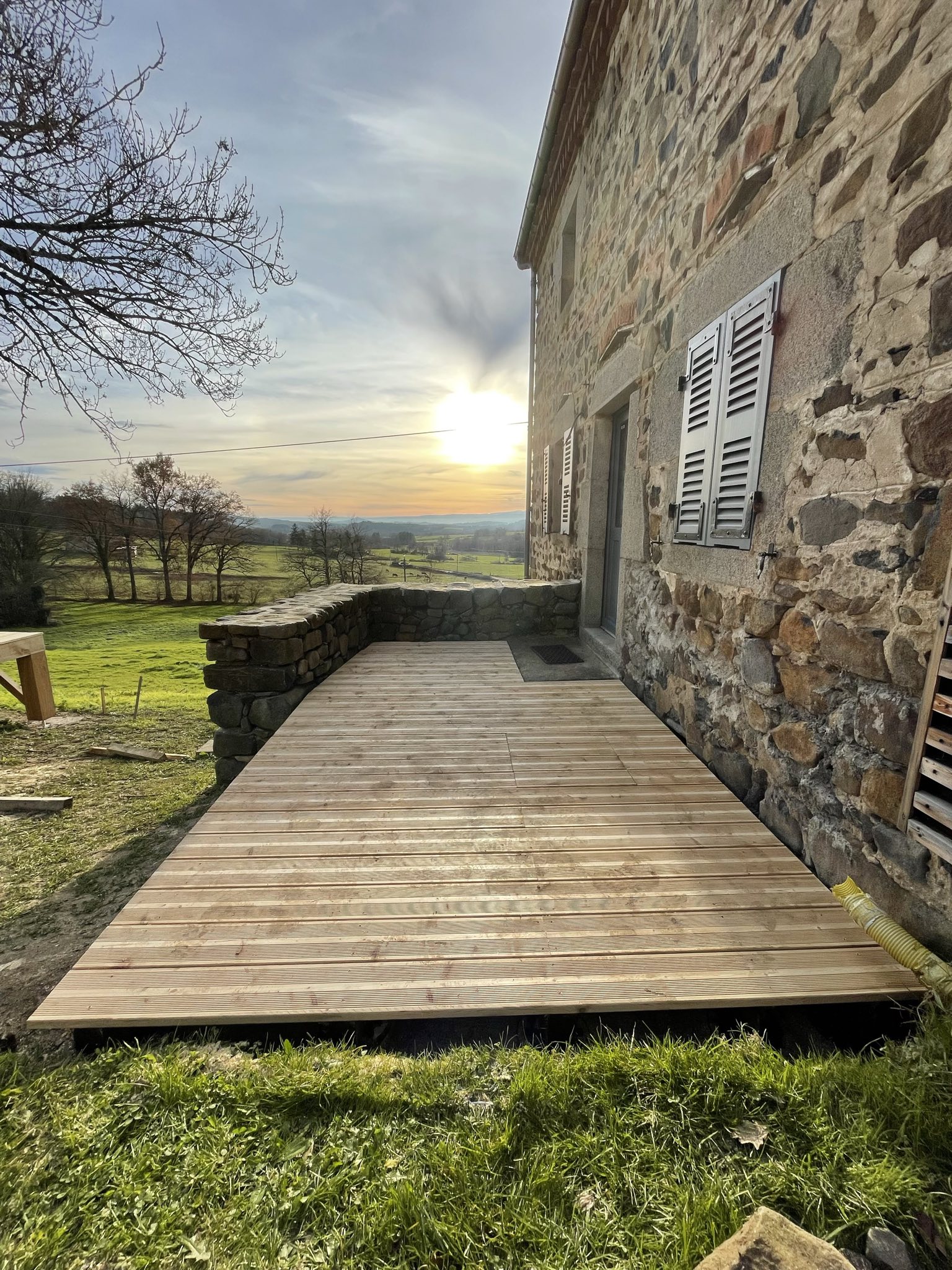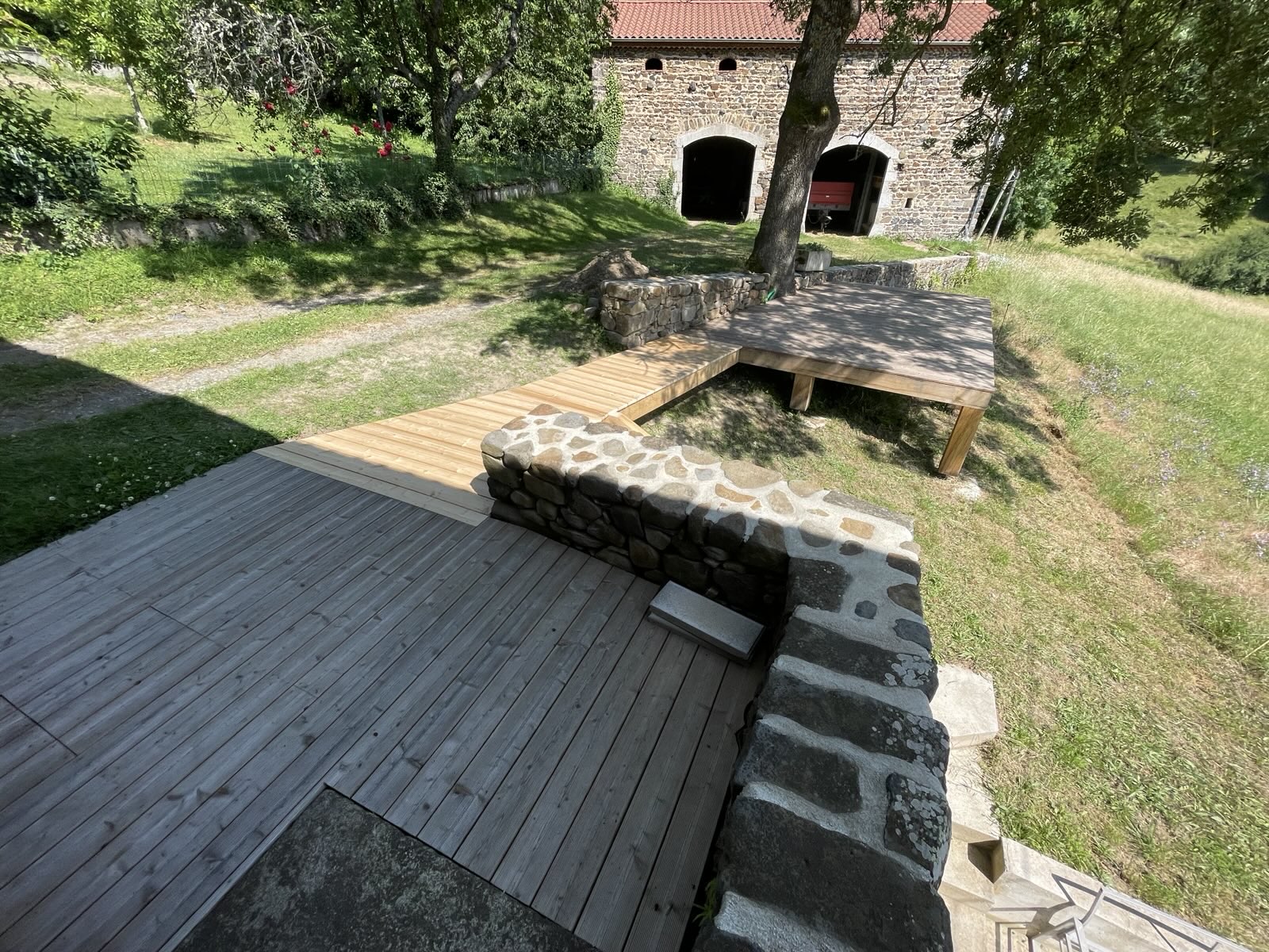 Réalisation d’une terrasse en acier thermolaqué avec un platelage bois. Les plans ont été réalisés en interne et confiés à un serrurier. Les lames de terrasse sont en Frêne rétifié(thermo chauffé). L’habillage sous la terrasse est en Ethernit. Marches en Chêne. Prêt pour la fin de l’année et vivement l’été prochain !