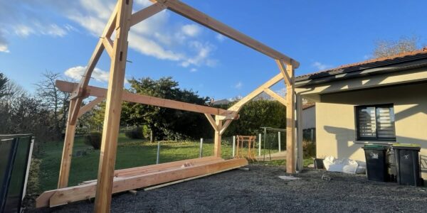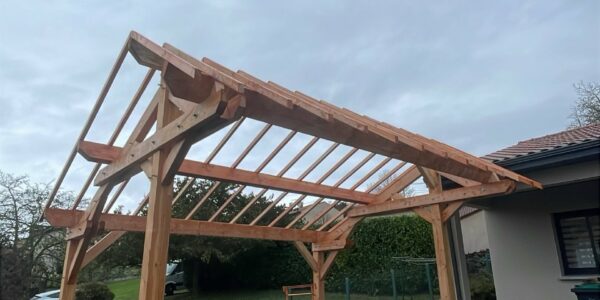 Réalisation d’une magnifique terrasse avec une structure en Chêne, ça fait toute la différence. Dans un cadre reposant, avec une vue formidable. Le client a décidé dans la foulée de faire l’entrée de la maison. Finalement le projet s’est soldé par l’ajout d’une passerelle et d’un escalier !