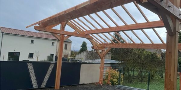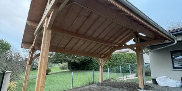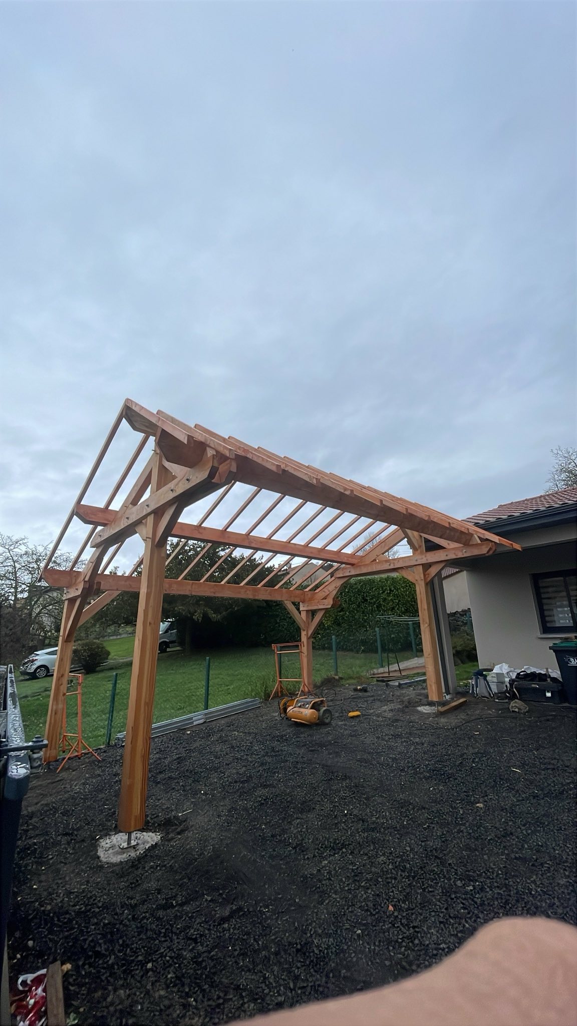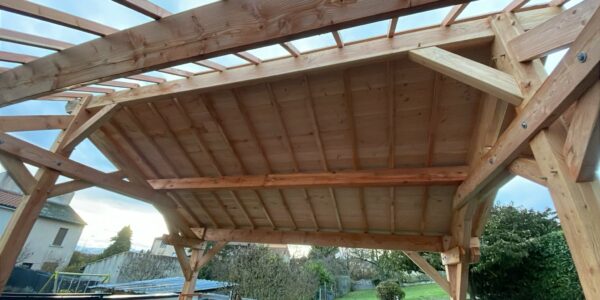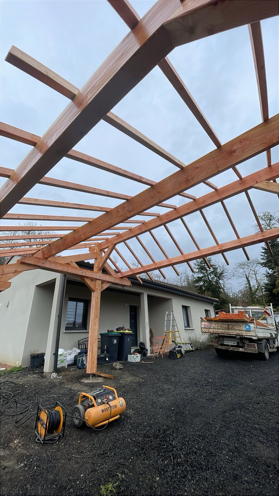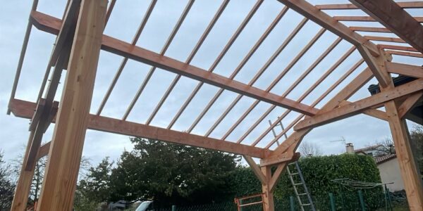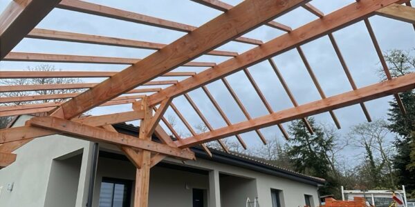 Réalisation de charpente d’une extension et raccord avec l’existant. Couverture de la totalité de l’habitation. Le raccord avec l’existant aura été exigeant, notamment dans la prise de cotes et l’implantation de la charpente. Une fois cette difficulté passées, les couvreurs on pu avancer sans encombres et sans défauts. Toute la charpente sera apparente dans l’extension. Encore une fois un très bel accueil du client, qui est ravi de notre travail.