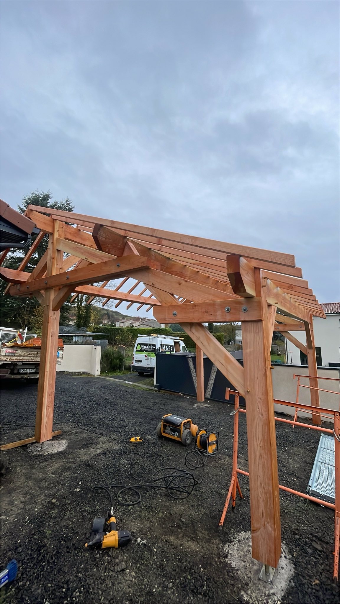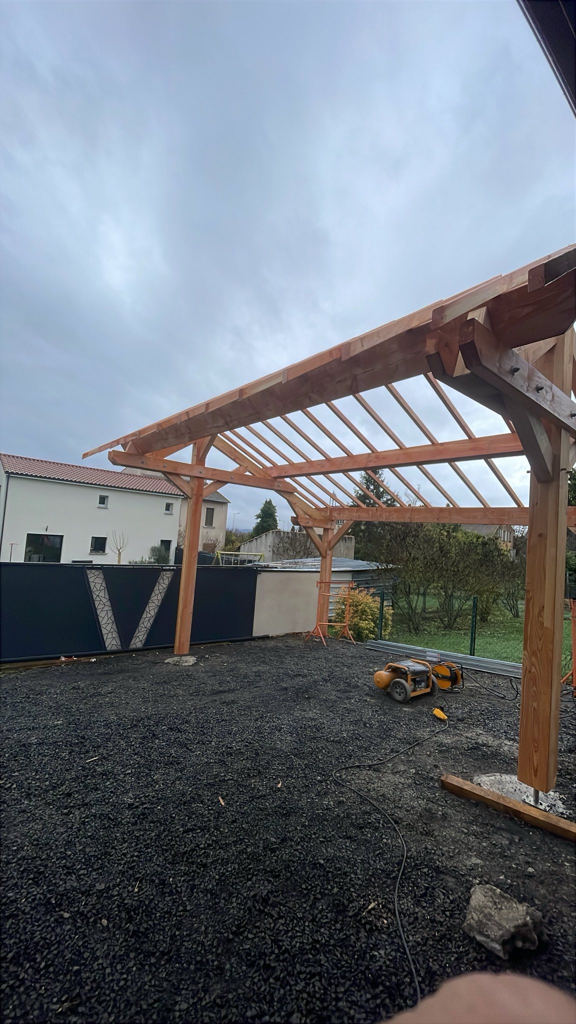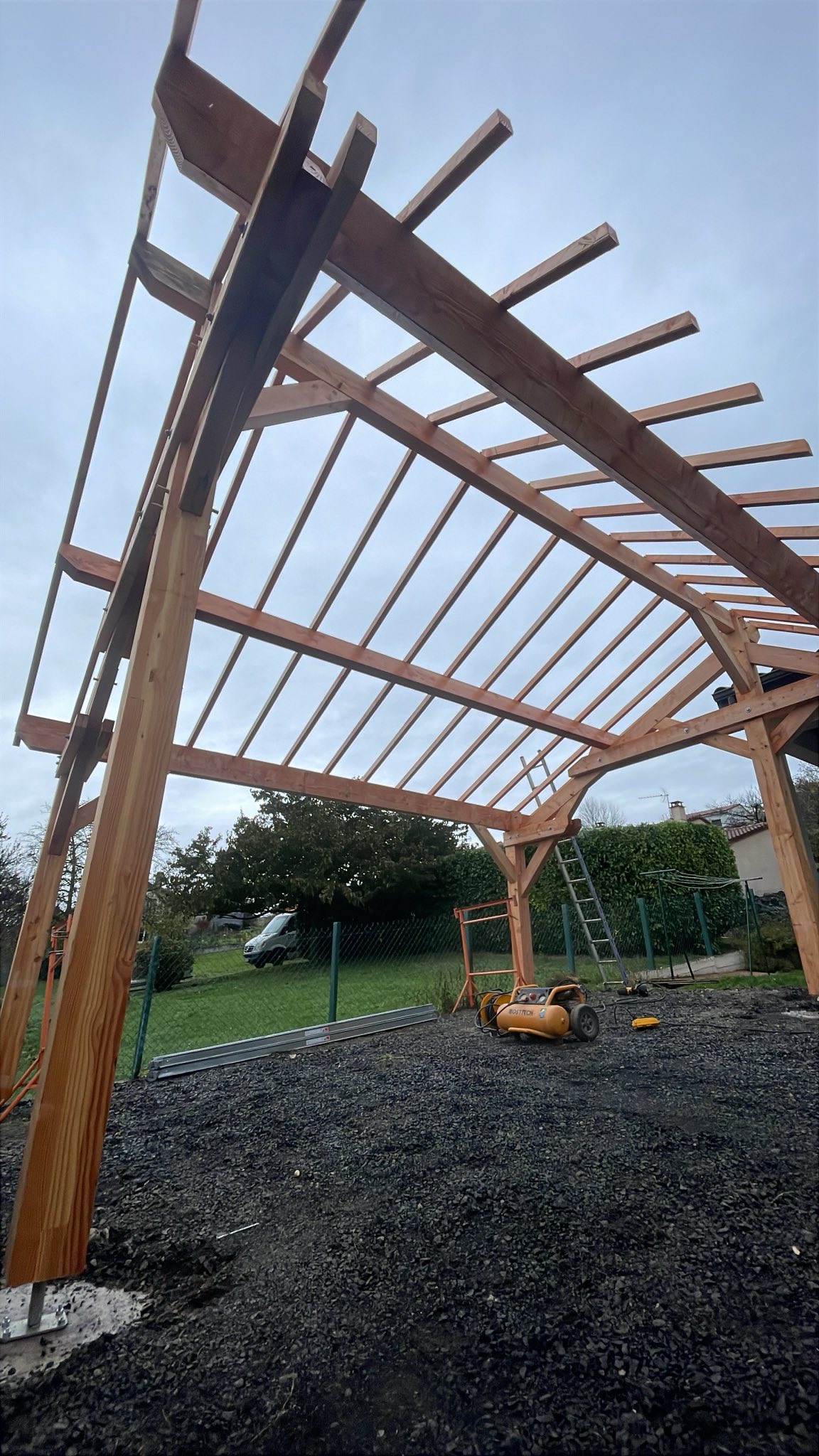 Réalisation de charpente d’une extension et raccord avec l’existant. Couverture de la totalité de l’habitation. Le raccord avec l’existant aura été exigeant, notamment dans la prise de cotes et l’implantation de la charpente. Une fois cette difficulté passées, les couvreurs on pu avancer sans encombres et sans défauts. Toute la charpente sera apparente dans l’extension. Encore une fois un très bel accueil du client, qui est ravi de notre travail.